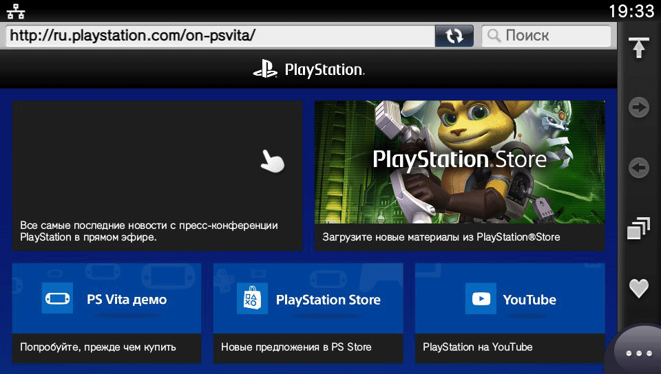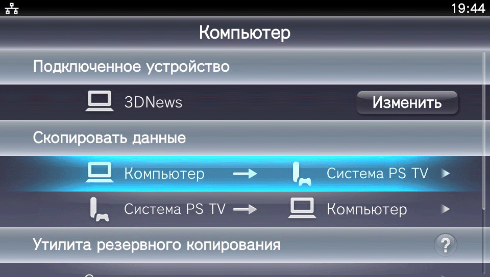 сенсорной панели PS Vita навигация по меню PS TV осуществляется с