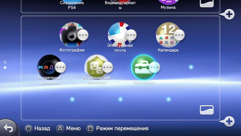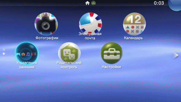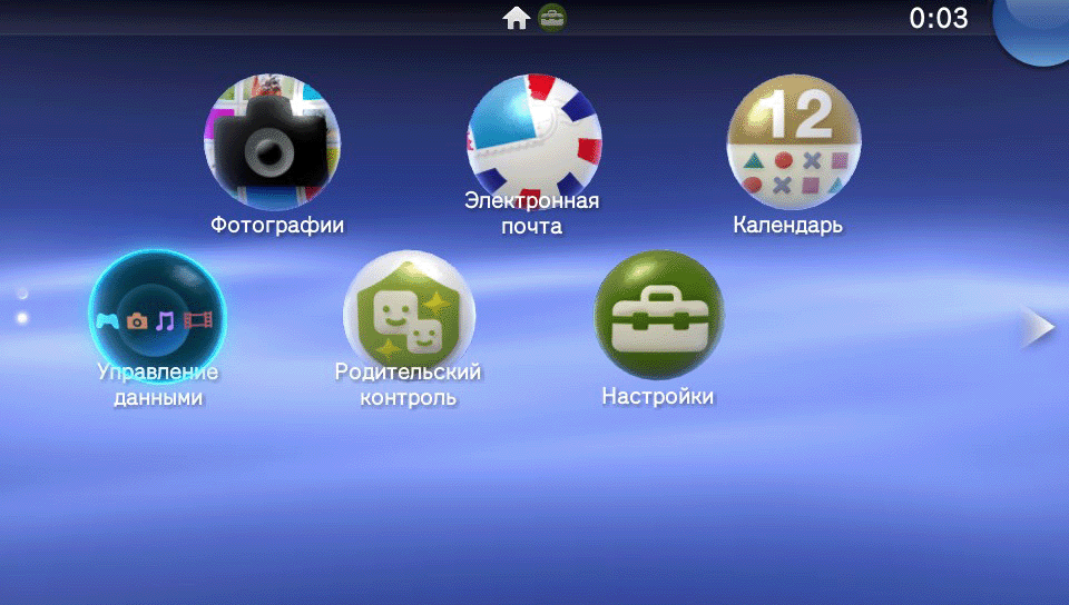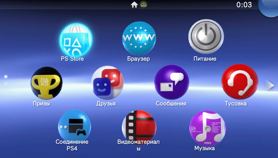 мобильной консоли PS Vita. Пиктограммы в виде анимированных сфер с