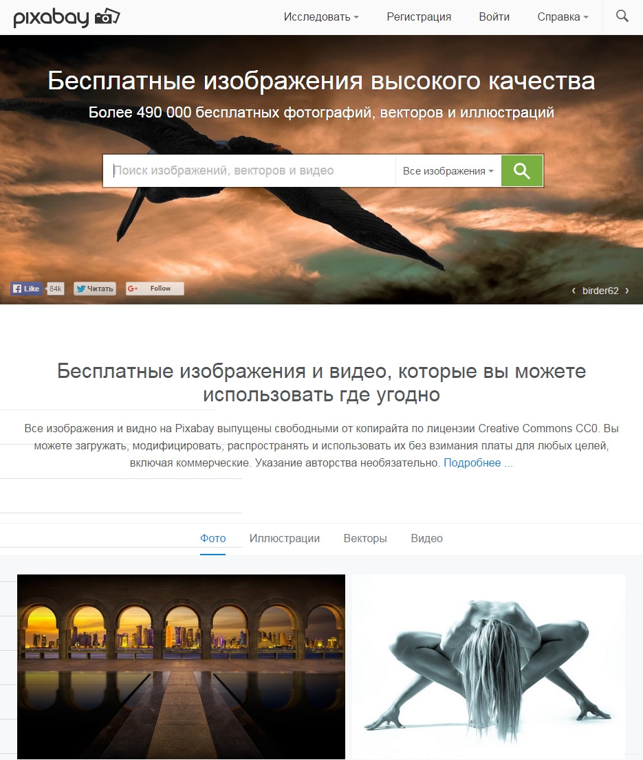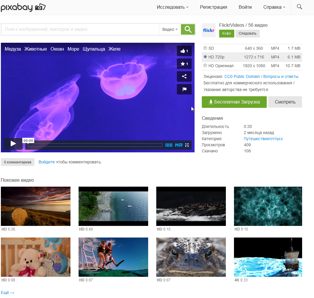 Без преувеличения можно сказать, что Pixabay — это один из самых лучших источников бесплатного мультимедийного контента в Сети.Сервис умеет искать не только фотографии, но и векторные изображения. Кроме того, с помощью Pixabay вы сможете найти коллекцию футажей — коротких тематических видеофрагментов. Поддержка видео добавлена в Pixabay относительно недавно, поэтому база клипов на данный момент невелика.