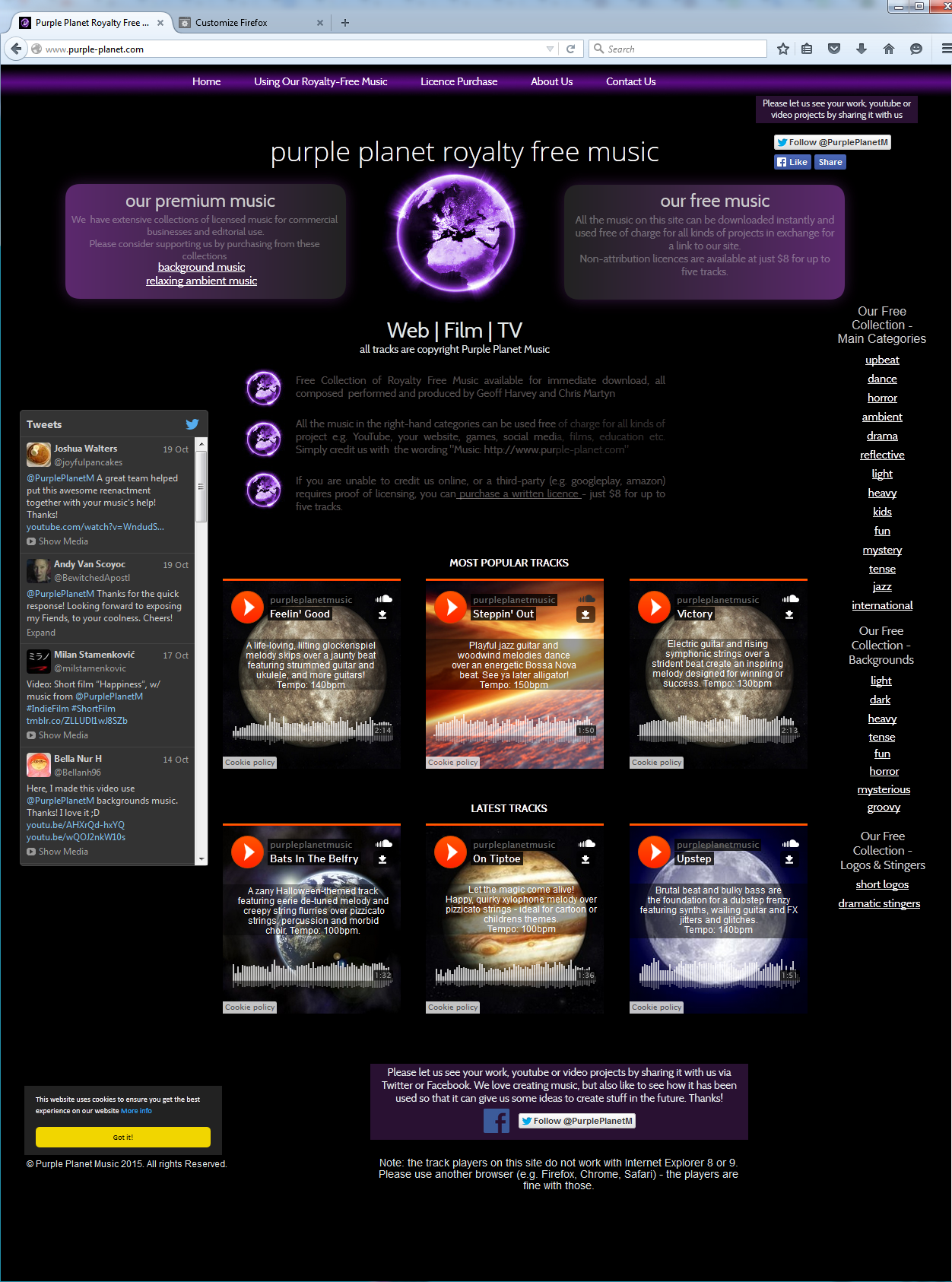 С фотографиями мы разобрались. А что же с музыкой? Этот вид творчества ценится куда дороже фотографий, поэтому найти бесплатные аудиозаписи, которые можно было бы легально использовать в своих проектах, намного сложнее.⇡#Purple Planet — бесплатная музыка от авторов