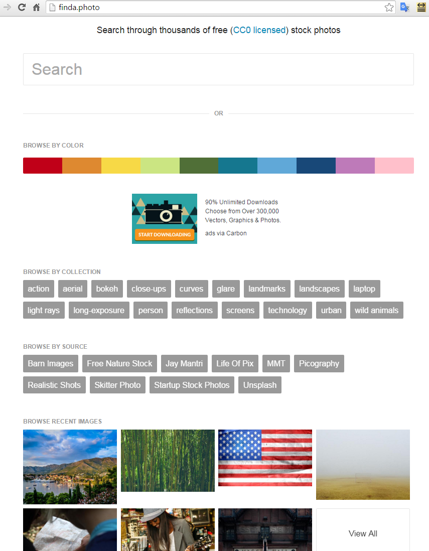 Данный сервис был создан британским разработчиком по имени Дэвид Бэркер (David Barker). Он собрал воедино коллекции изображений из следующих бесплатных фотостоков: MMT, Free Nature Stock, Life of Pix, Unsplash, Skitter Photo, Realistic Shots, Startup Stock Photos, Picography, Barn Images, Jay Mantri.Автор дополнил полученную библиотеку и организовал очень удобный поиск. Все фотографии, представленные на сервисе FindAPhoto, равно как и на стоковых сайтах, откуда они были взяты, распространяются согласно типу лицензии Creative Commons Zero (CC0), которая означает передачу контента в общественное достояние, а следовательно, делает его пригодным для коммерческого использования. Иными словами, вы можете делать с фотографиями всё, что захотите, и вам за это ничего не будет.